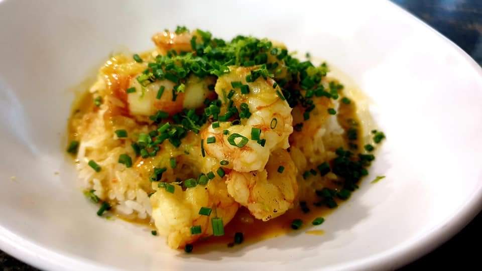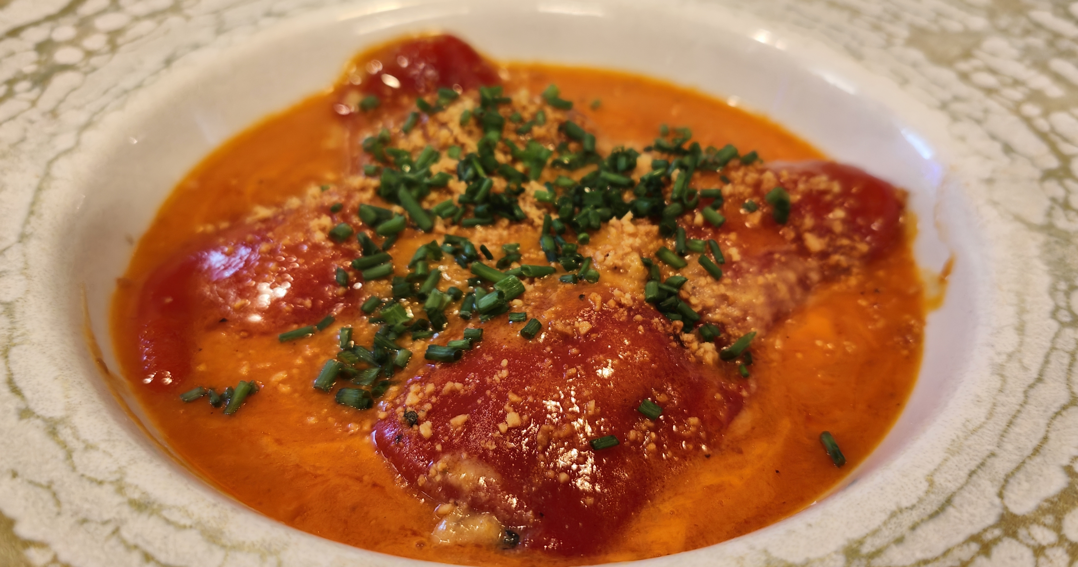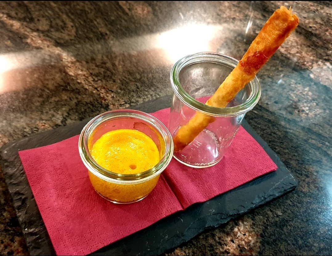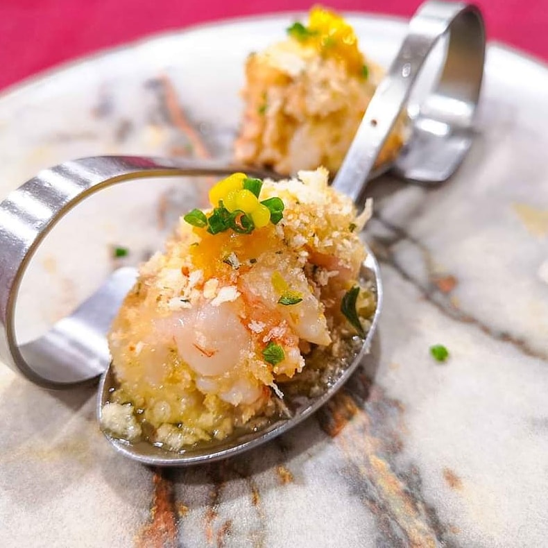 Bombon de gamba relleno de ricota, kimchi, esencia de gamba y vinagreta de Lima (unidad)