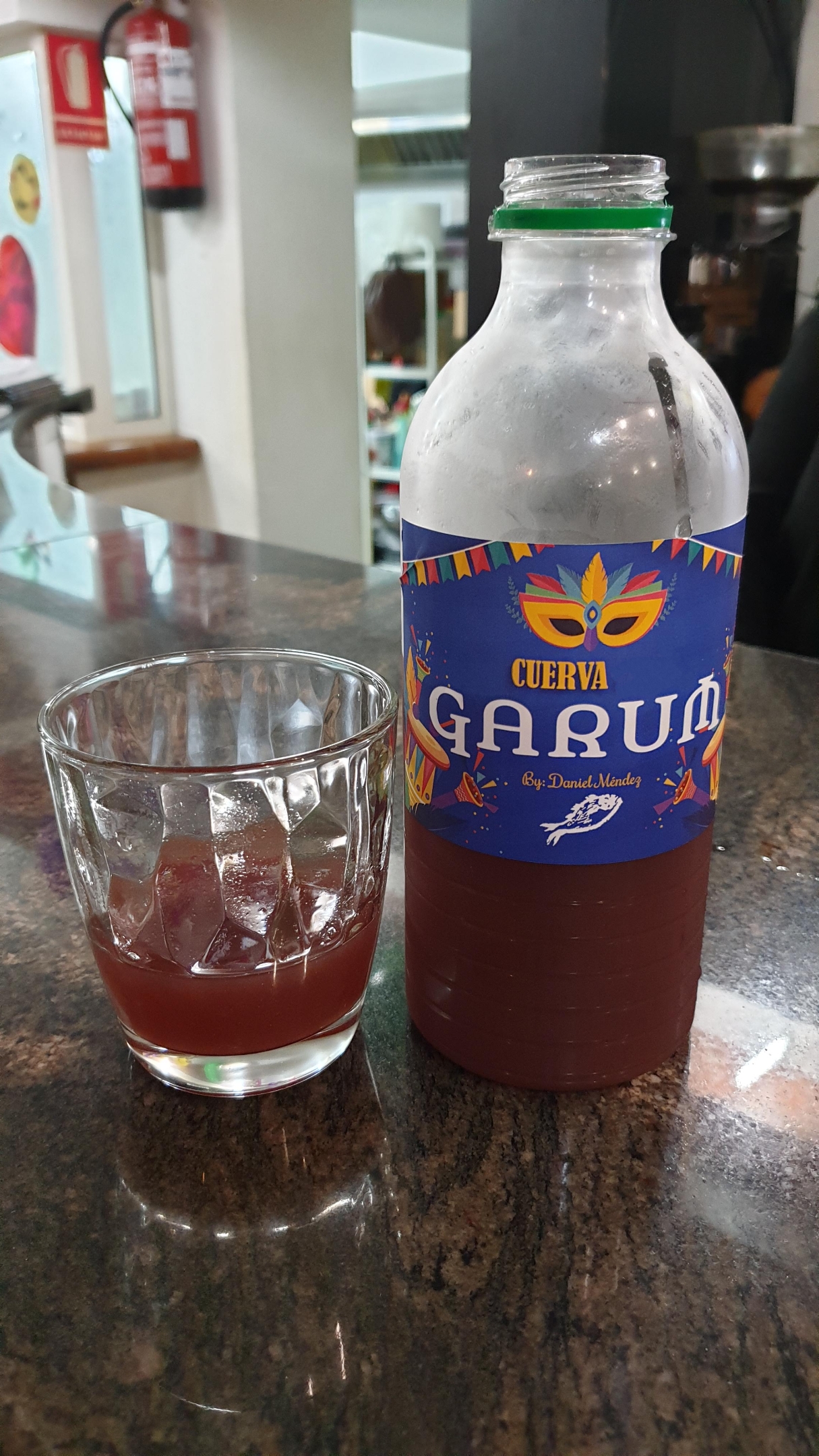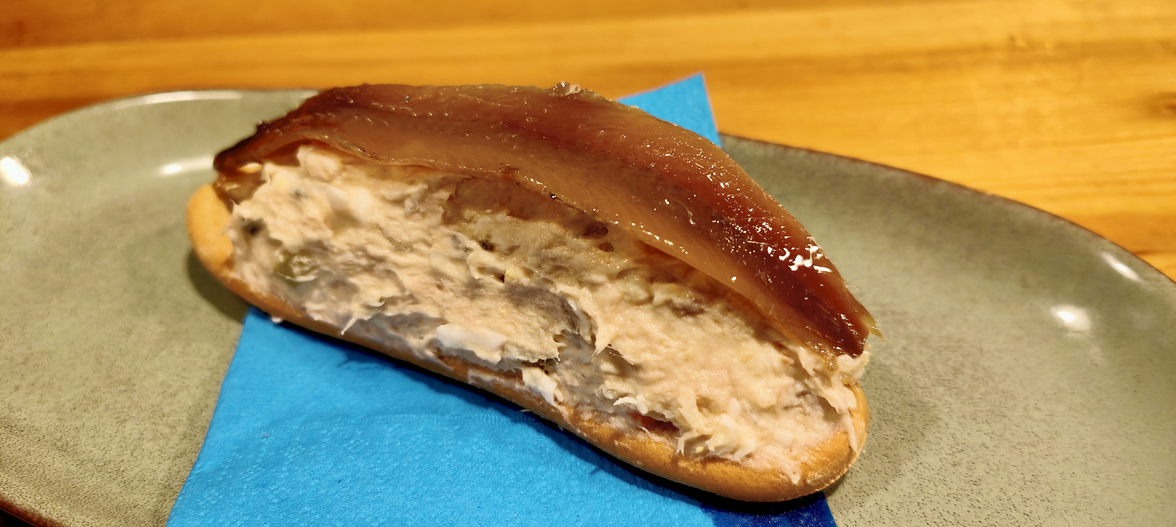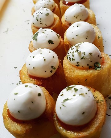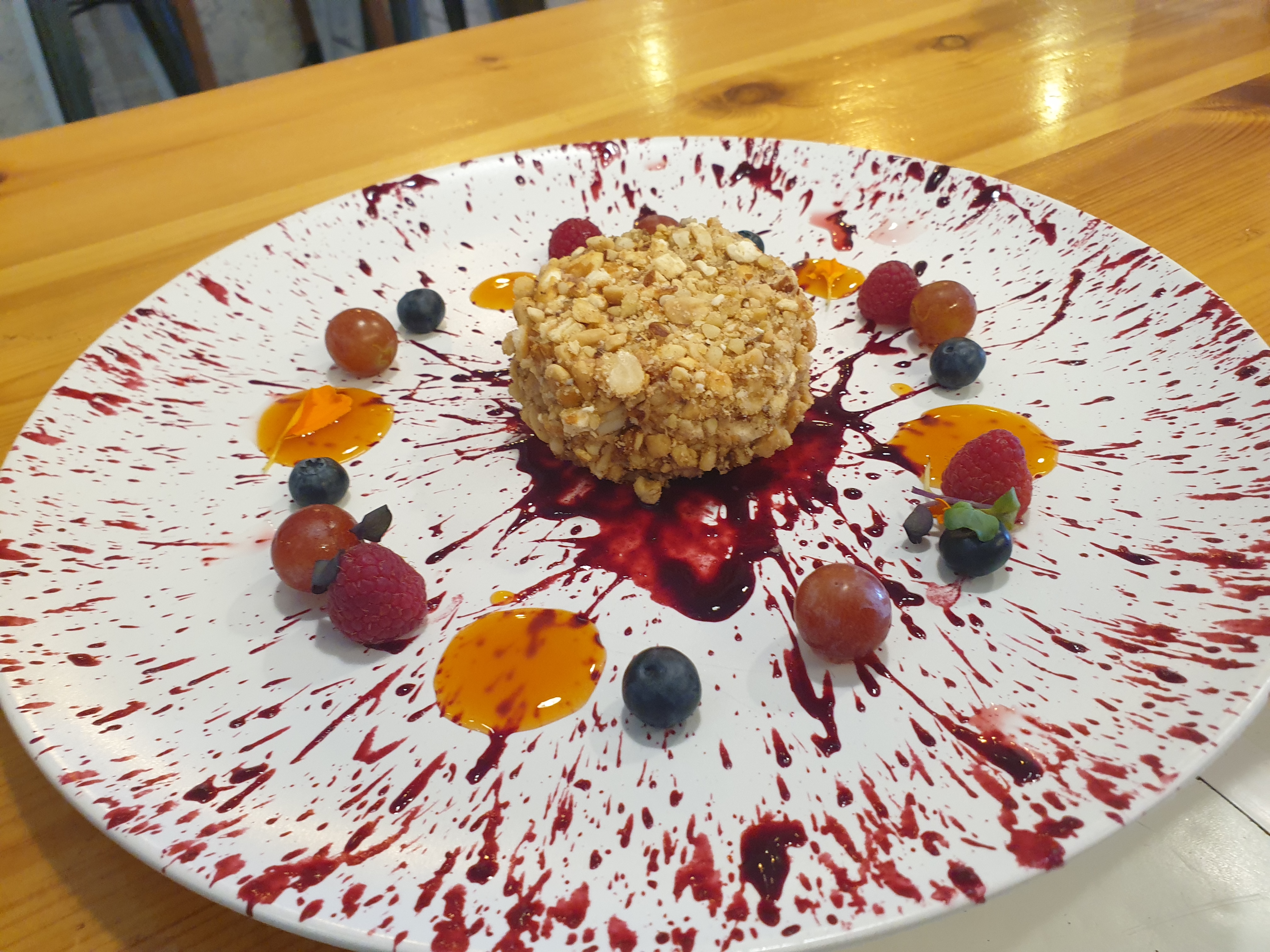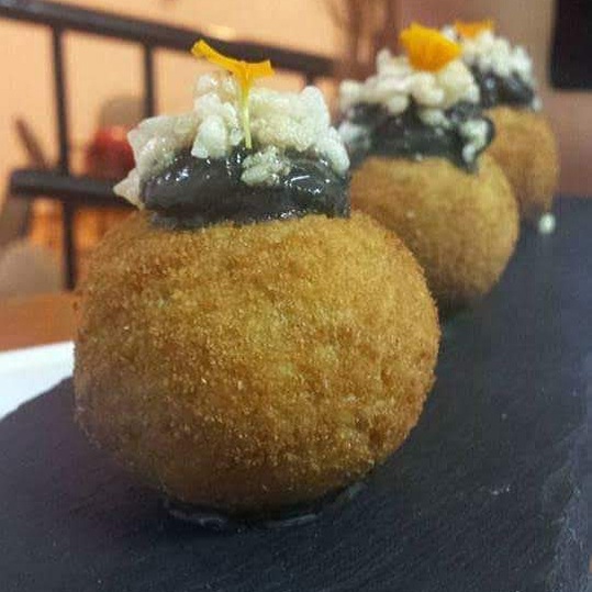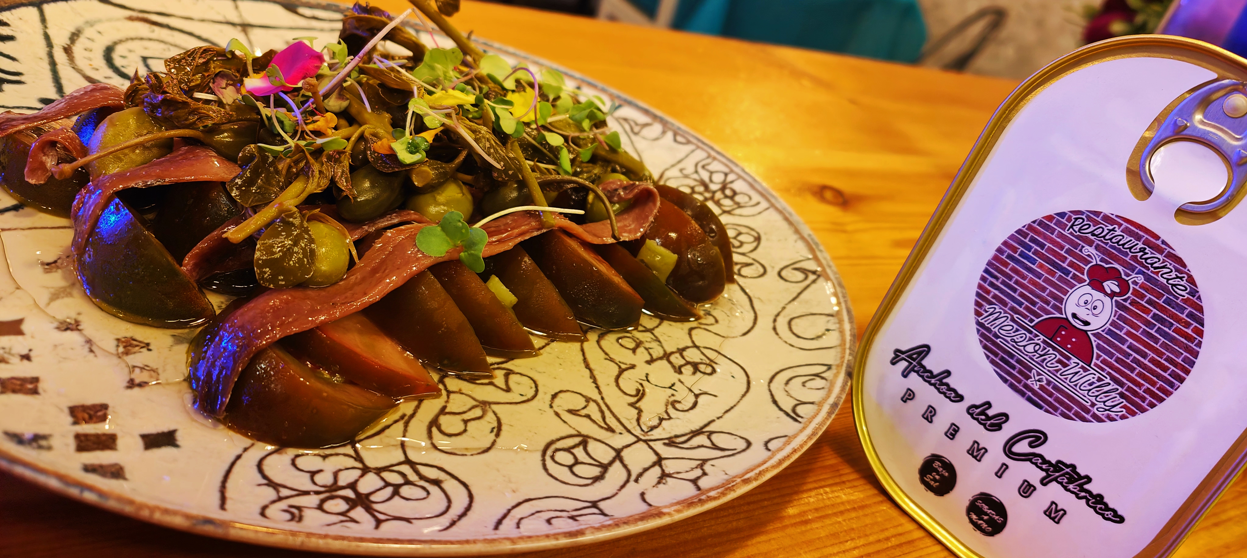 GARUM, paté de pescado azul, puré de tomate seco, coulis de fruta de la pasión, tapenade con aceitunas verdes, alcaparras, concasse de tomate y esferificaciones de fruta de la pasión