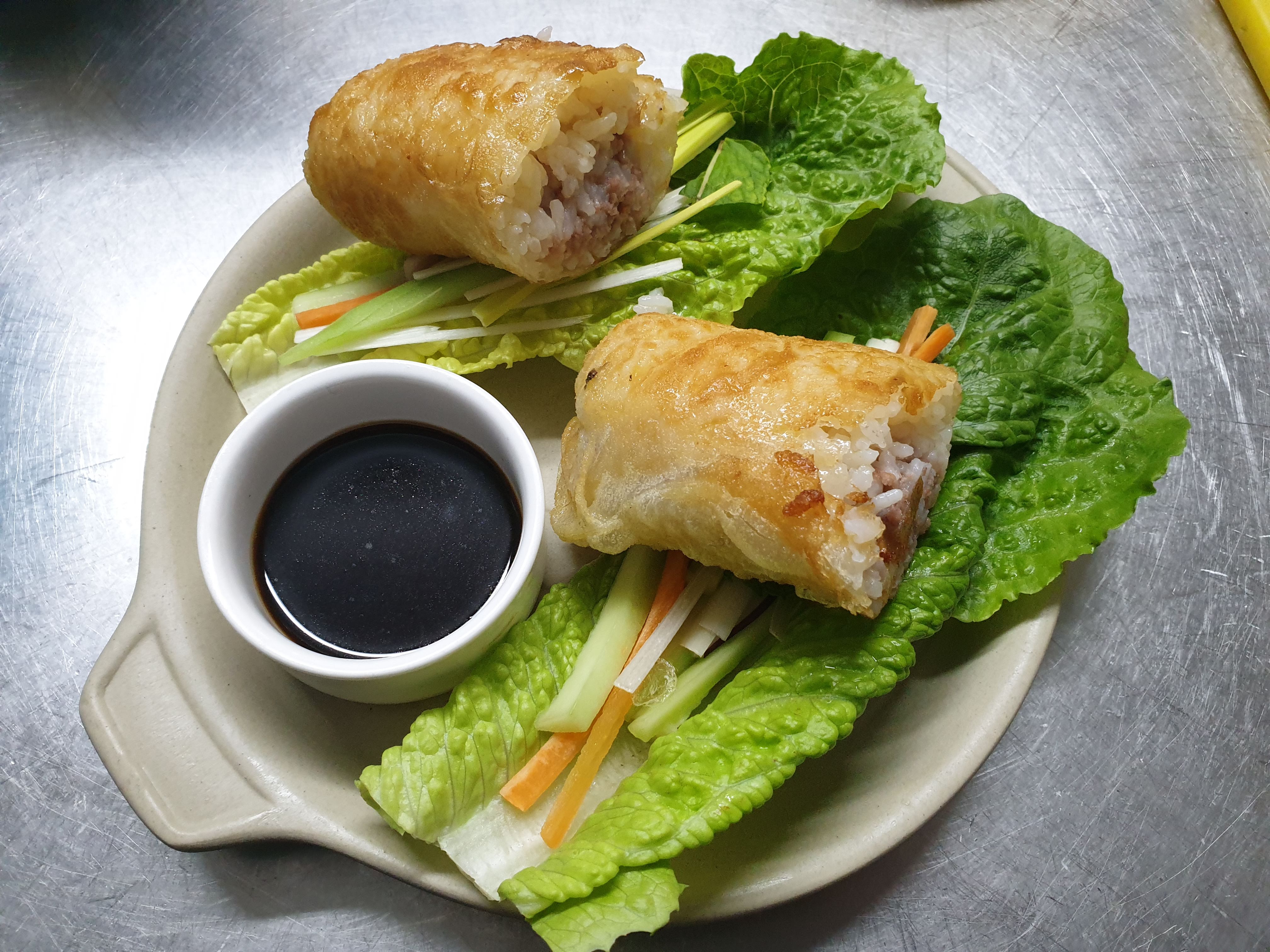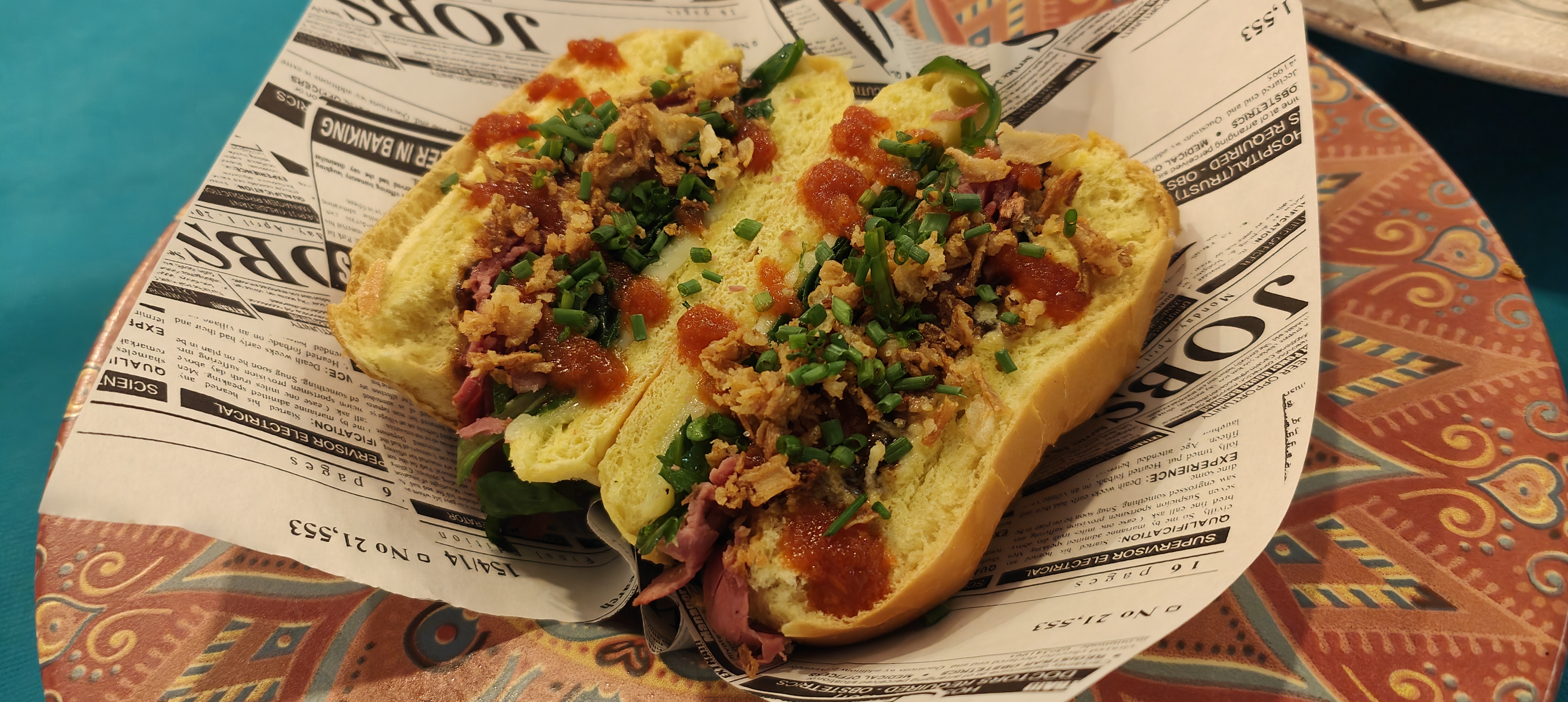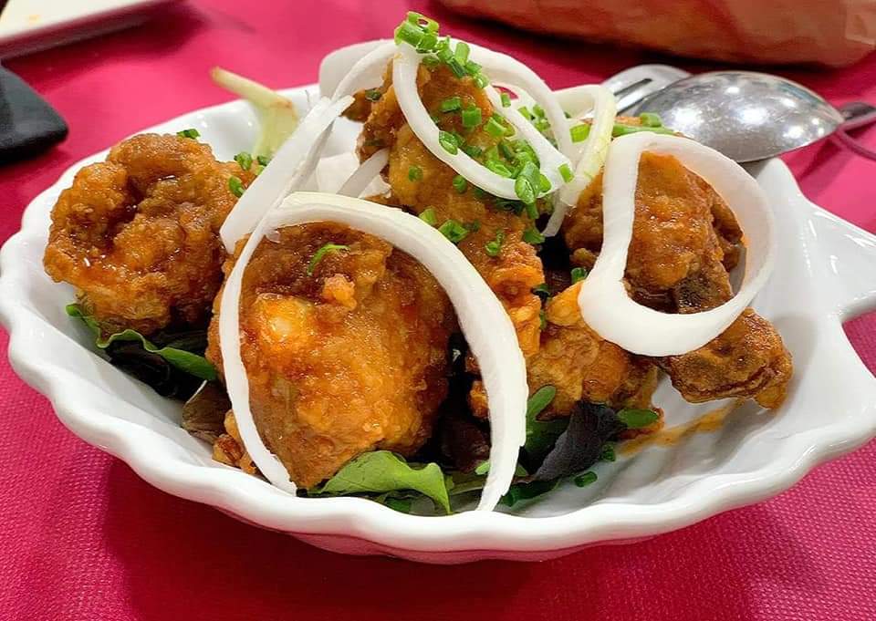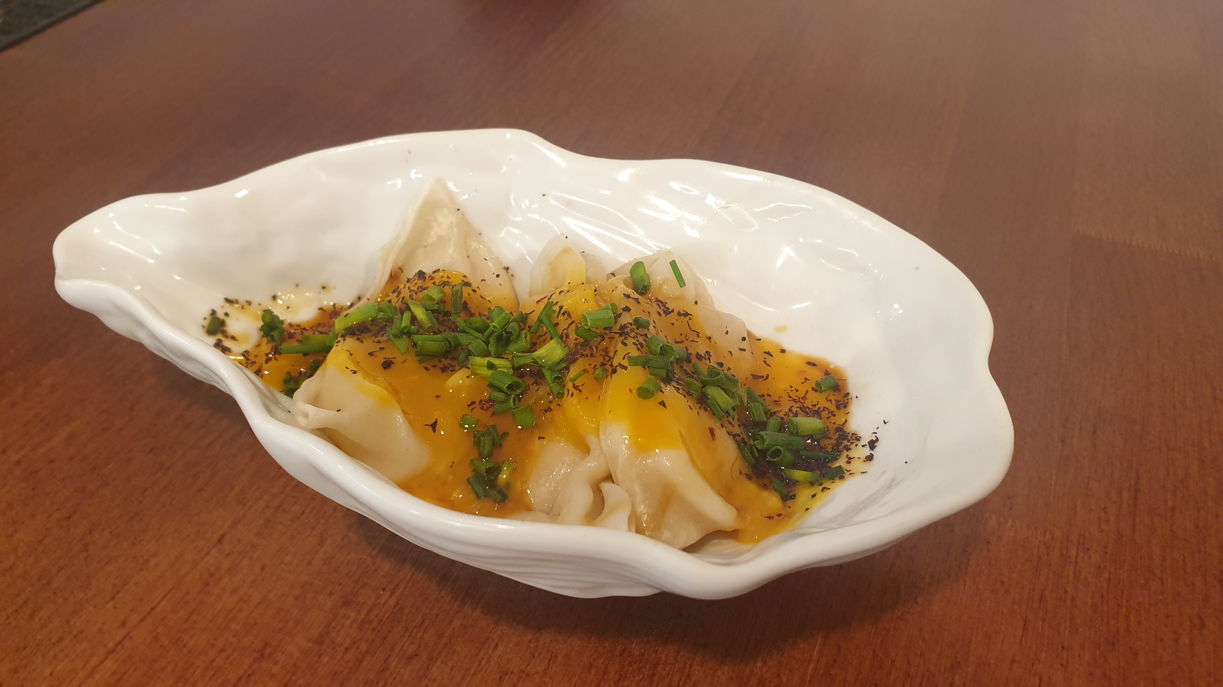 •Jamon de mar, picadillo marinado de pepino, naranja, fruta de la pasión, aji amarillo y sesamo